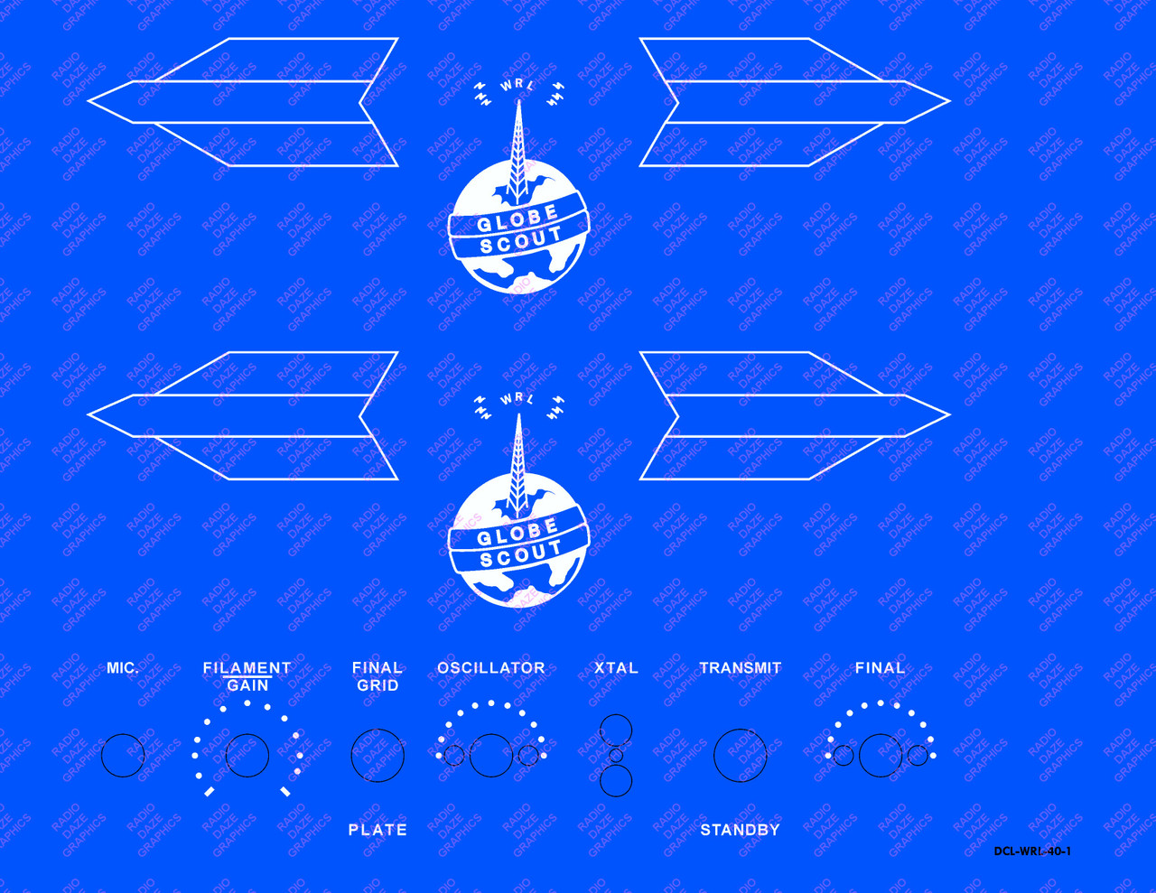 World Radio Laboratories Globe Scout Model 40 Decal Set - three of each label, logo and "wings" in white